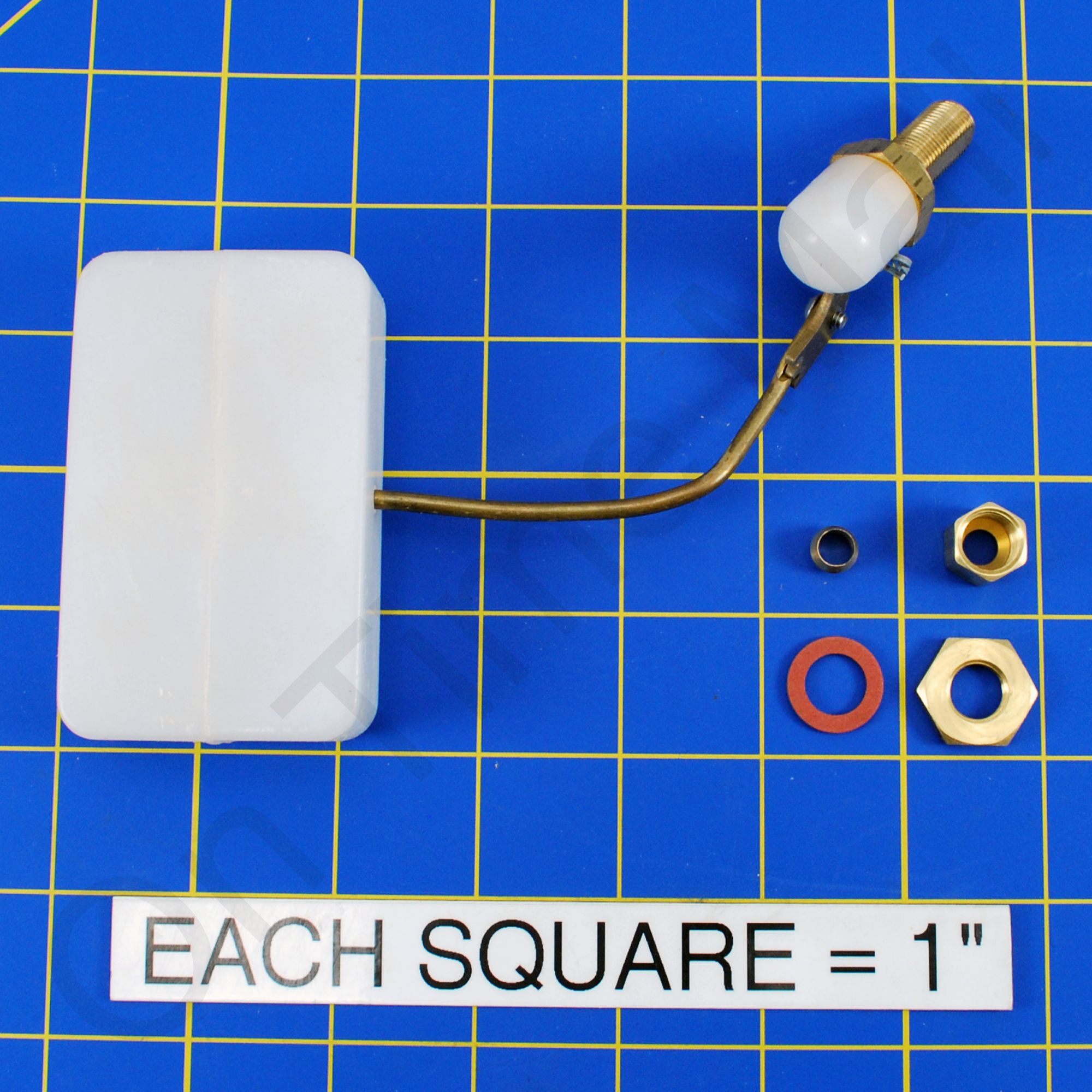 This is a brass float valve that has a 1/4" female compression inlet fitting. The float is plastic. You can adjust the water level by loosening the screw on the side of it and adjusting the float arm angle. Replacement float valve assembly kit for Trion for 707, 707U, 707UK, 707SM, 707TW whole house humidifiers. Includes valve, float and seat.